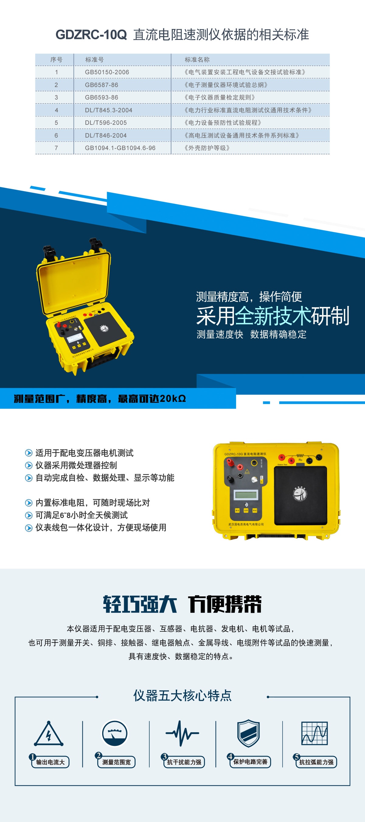 · 適用于配電變壓器、互感器、電抗器、發電機、電機等試品,也可用于測量開關、銅排、接觸器、繼電器觸點、金屬導線、電纜附件等試品的快速測量;