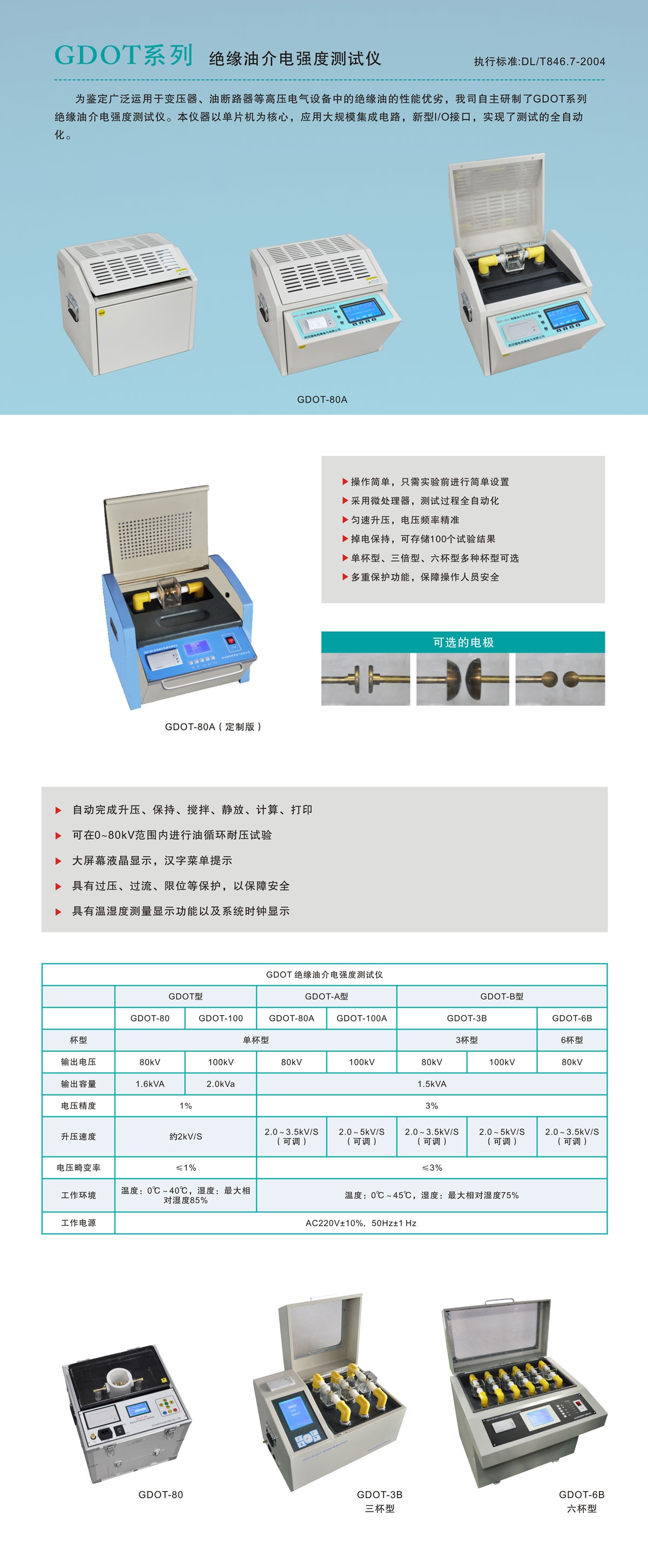 ·本儀器操作簡單,自動完成油樣的耐壓試驗。