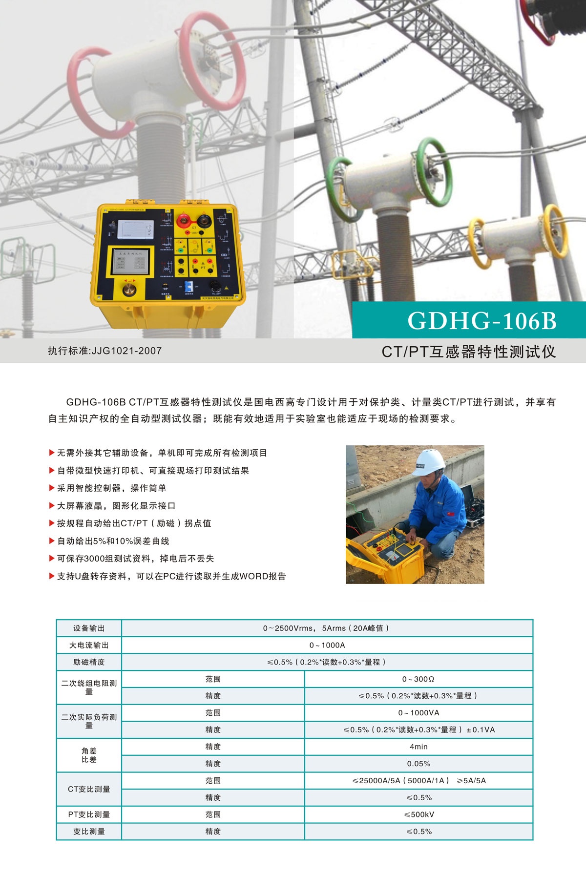 GDHG-106B 型CT/PT特性測試儀是國電西高針對保護類、計量類CT/PT進行測試而研發(fā)并享有自主知識產權的第五代全自動型測試儀器,該儀器適用于實驗室也適用于現場檢測,它集我們多年之生產經驗,博采眾長,摒棄華寵,突出實用,功能全面。可輕松便捷地對互感器做伏安特性、變比、比差、角差、負荷等測試項目。