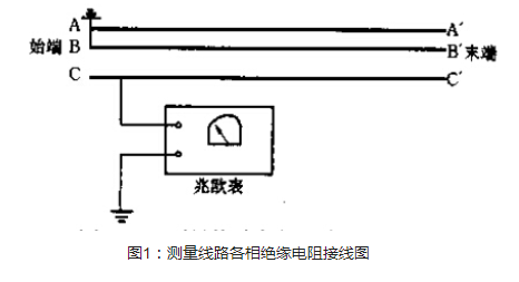 測量絕緣電阻,是為了檢查線路絕緣狀況,以及有無接地或相間短路等缺陷。一般應(yīng)在沿線天氣良好情況下(不能在雷雨天氣)進(jìn)行測量。首先將被測線路三相對地短接,以釋放線路電容積累的靜電荷,從而保證人身和設(shè)備安全。