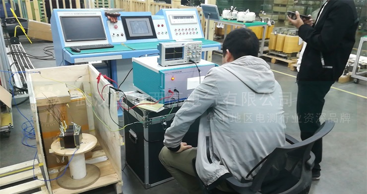 調試當天,我司技術人員將設備安裝好之后,按客戶要求準備做變壓器沖擊電壓試驗。現場在客戶的組織下首先開始培訓設備接線方法,從設備接地接線方法到最后連接被試品一個步驟不落的教授給客戶。接著進入實際操作演示。